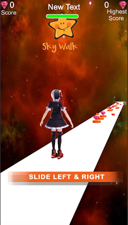 Get yourself into this new Sky Walk -Space Ride game, Run as fast as you can and avoid the obstacles. Drag your finger left and right to control your posture to pass through the obstacle games!