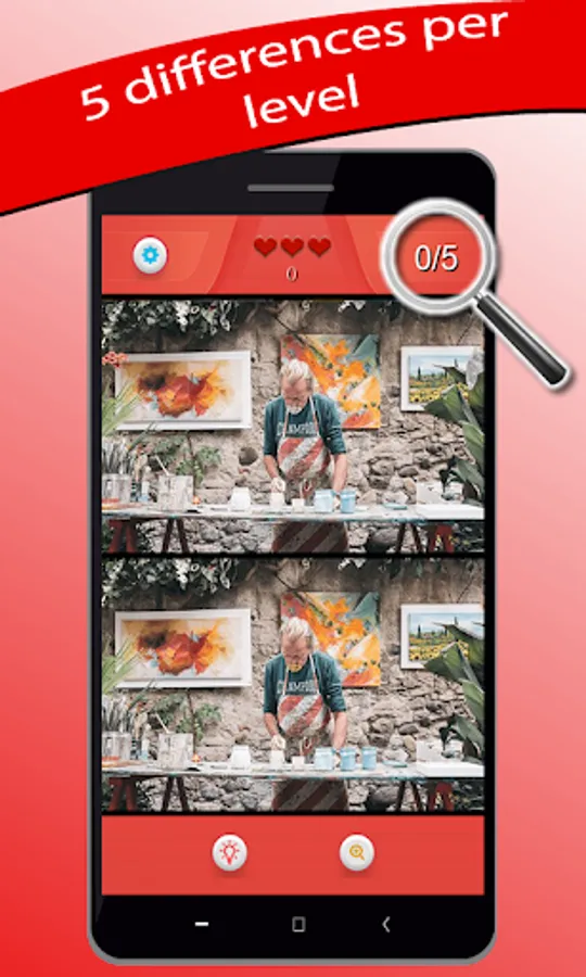 Polish your focus and difference finding skills with one of the most amazing find the difference games. Play more than 500 levels for free and spend your free time playing an intense yet entertaining find the difference game. From cool HD images and smooth controls to exclusive ZOOM action and free hints, this game is all about offering endless fun to players of all ages and genders. Play solo or ask your friends for a gaming action and solve the levels by spotting all the differences in every level. Try it now!