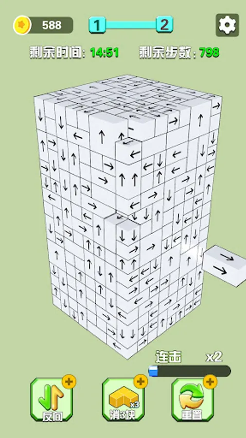 But the blocks only fly in one direction, so you have to approach this brain teaser carefully!