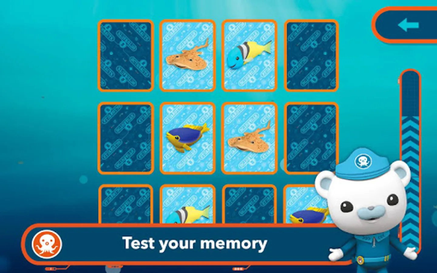Besides, you can play and overcome different levels of the games to complete the Octonauts cards album with 14 Gold Cards, 14 Silver Cards with all their vehicles and 104 cards with all the sea animals.