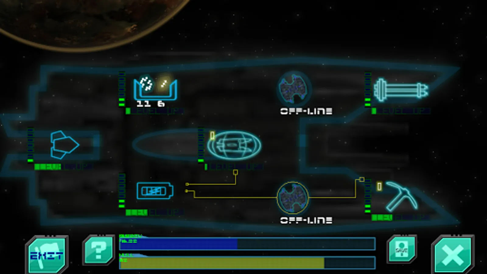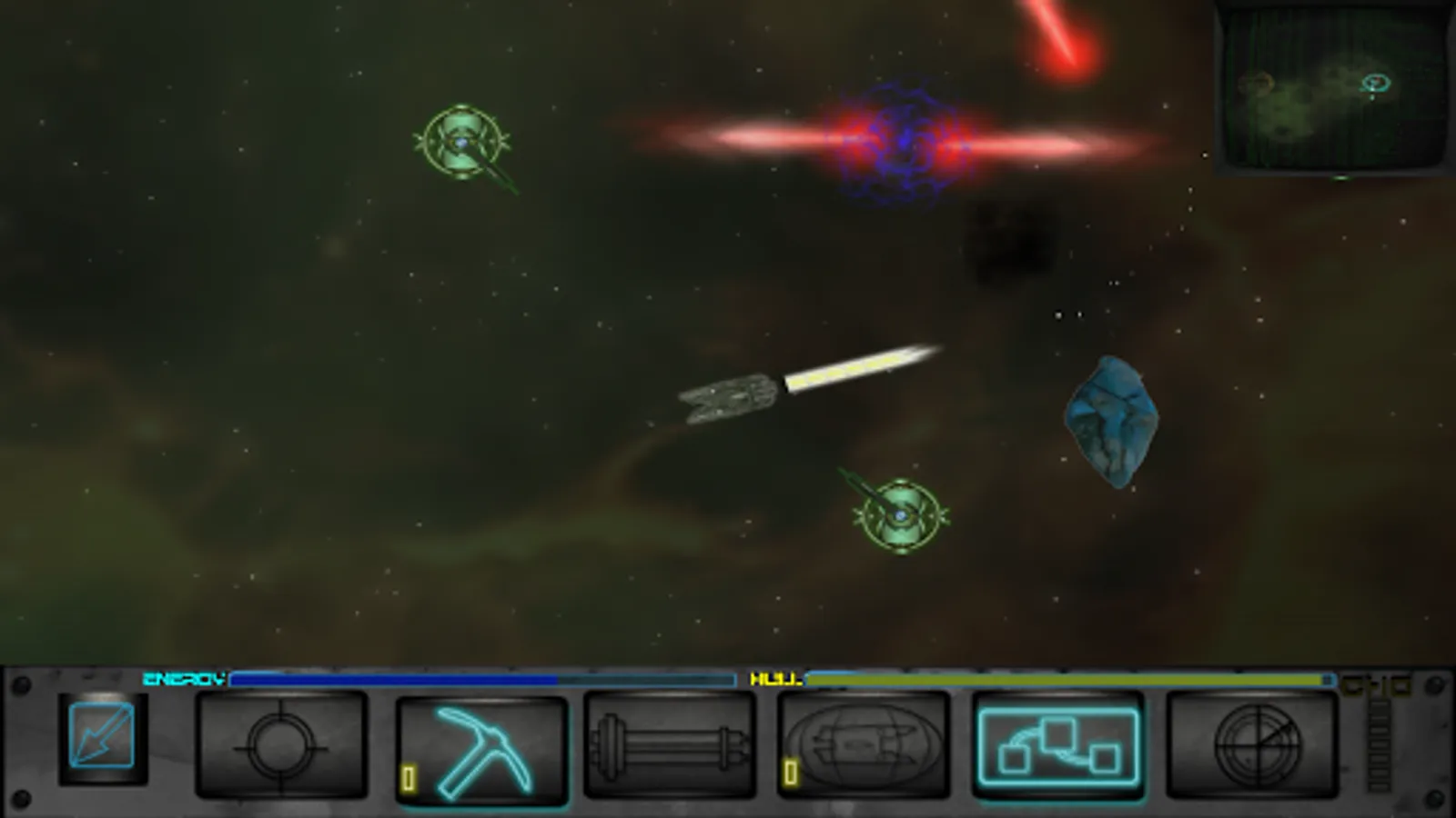 As part of a large ship armada exploring the unknown sectors of space, you find yourself barely alive with a damaged fighter and the armada destroyed. Mine asteroids and dead alien craft for resources. Find the nine warp beacons needed to make it back to earth. In your journey you will encounter both good and hostile alien life. Configuring your ships power sources to the right systems in each encounter may be the key to success. Collect strange space artifacts that enhance your ships systems and discover strange allies to help you in your quest. Hyper Dark will take you back to the age of learning through exploration instead of through tedious tutorials and manuals.