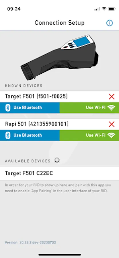 RIDcontrol™ is an app that can be used to remotely control, manage and configure Radionuclide Identifying Devices (RID)'s of the Target F501 device class. The app is only useful in combination with a compatible RID (see below). Without such hardware, the app is useless.