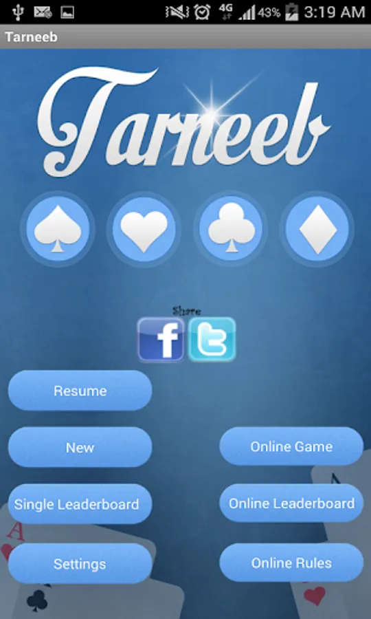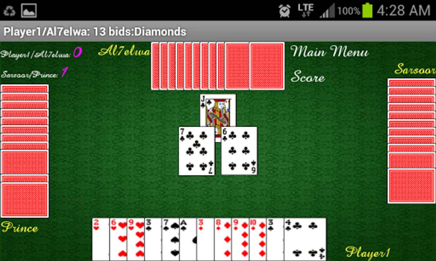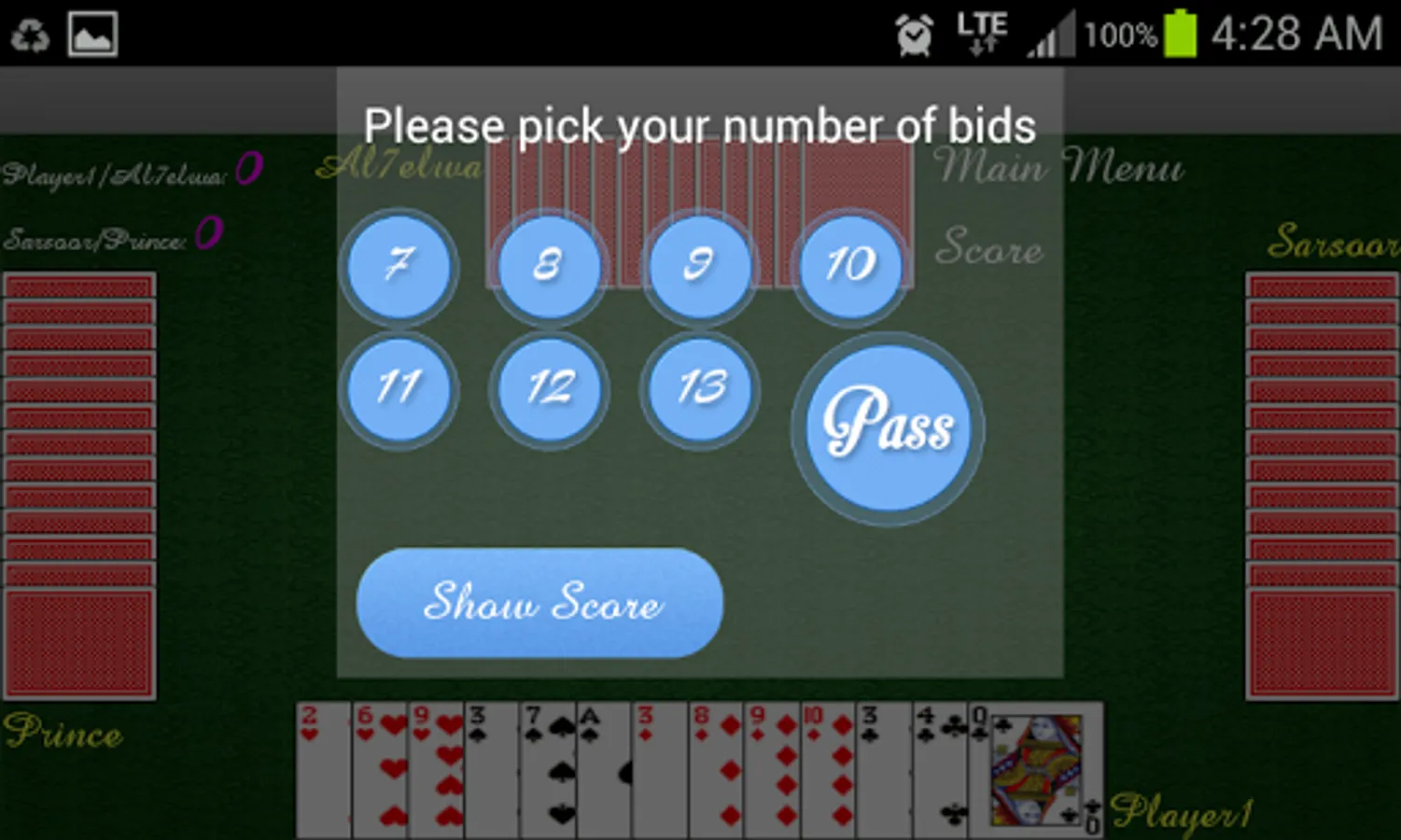 Tarneeb, Tarnib, or even Trumps is a hearts like game. the game is played in teams and the winner team has to win the bid or break the other team bid. Very addictive game and a great one to kill some time anywhere you are. This app allows you to play up to score of 31 or 61 as many as you want and it has: