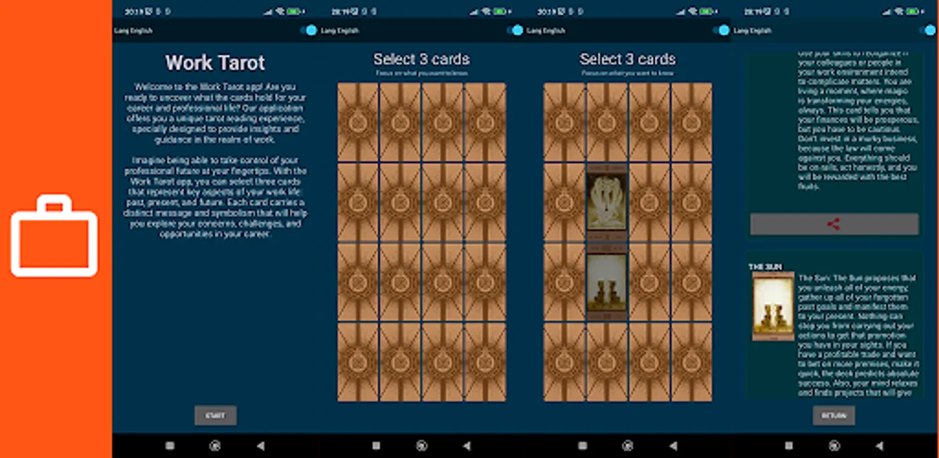 Imagine being able to take control of your professional future at your fingertips. With the "Work Tarot" app, you can select three cards that represent key aspects of your work life: past, present, and future. Each card carries a distinct message and symbolism that will help you explore your concerns, challenges, and opportunities in your career.