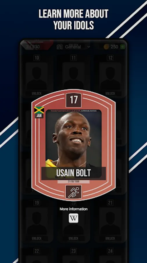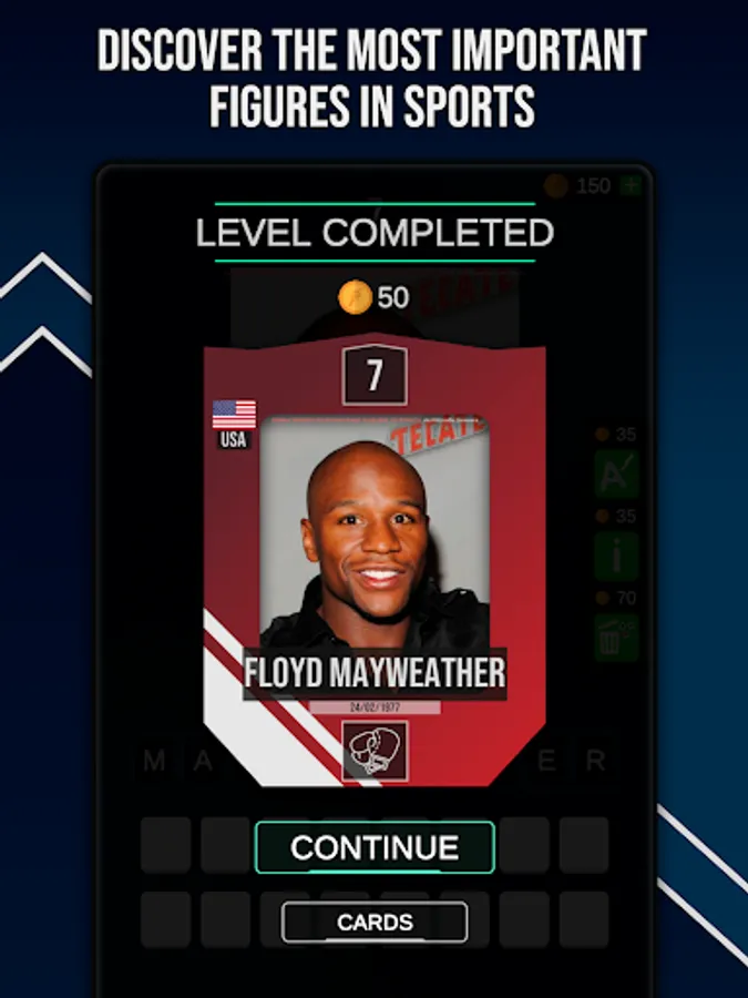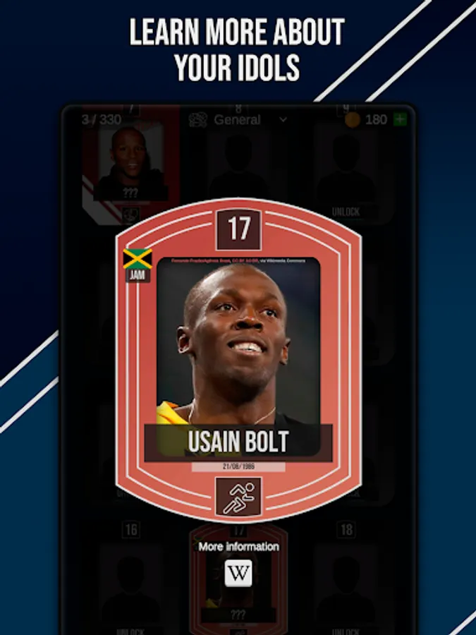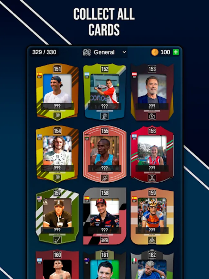 Complete the levels and get their cards, there are more than 300 athletes to guess.
