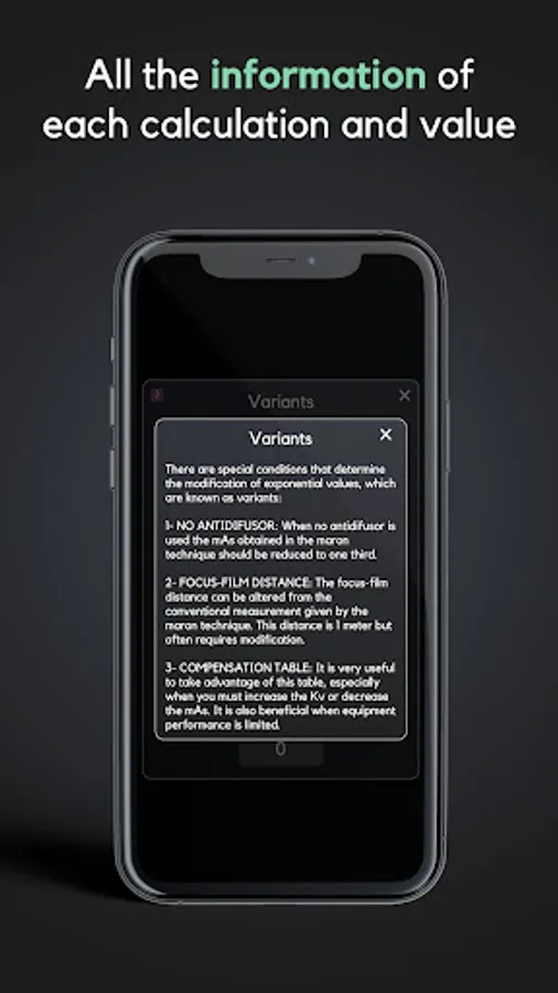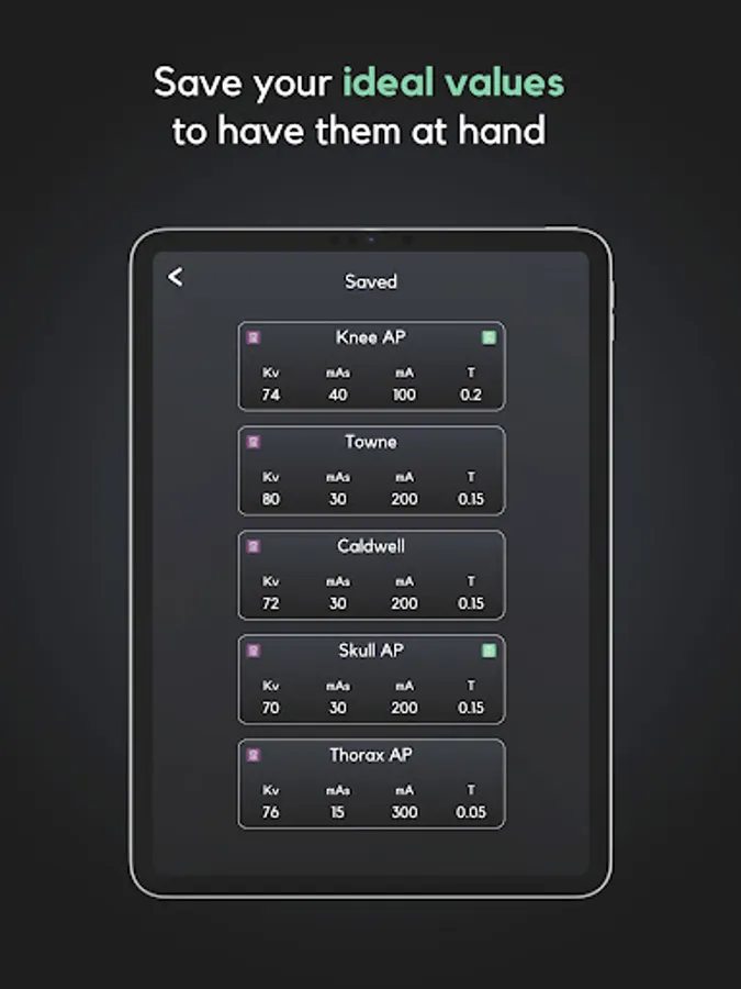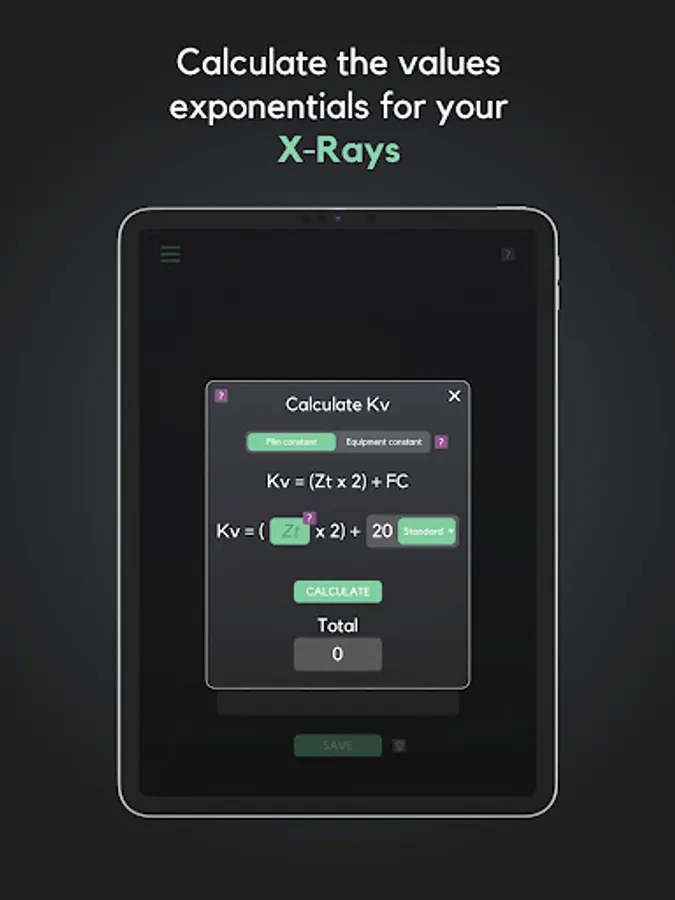 With "RX - Values Calculator" you can acquire the ideal exponential values for your radiographic studies.
