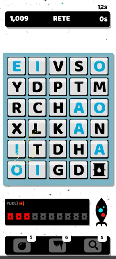 When you play in multiplayer, launching the rocket at your friends gives you a chance to make their game more difficult. Watch out during your turn! If your friend launches a rocket at you, you may find your letters jumbled, harder to read, or any number of other unusual circumstances.
