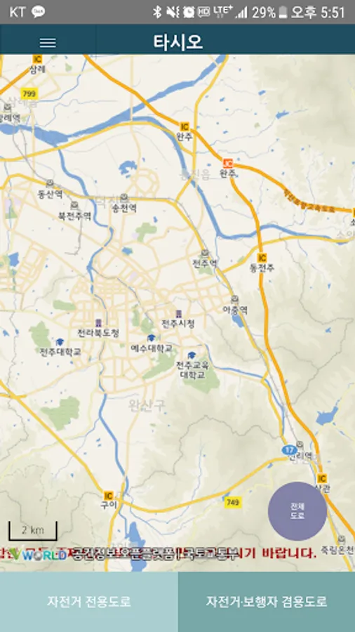 An application that shows the bicycle road and convenience facilities in Jeonju on the map