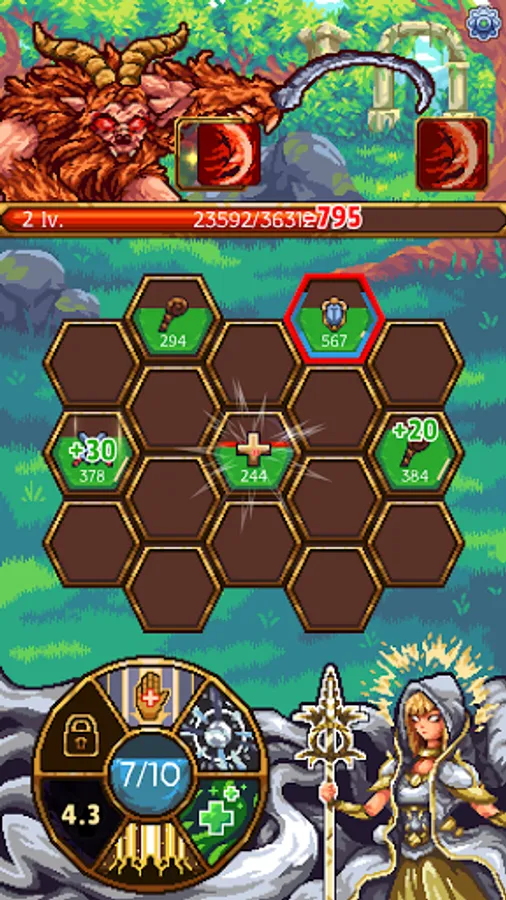 In each battle you have a set of units that attack the boss. Your task is to heal, enhance and remove negative effects from units until you defeat the boss.