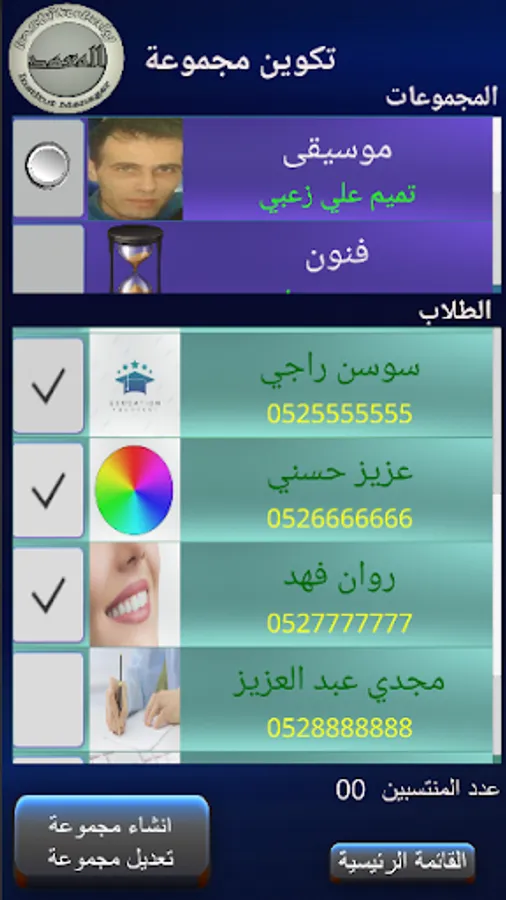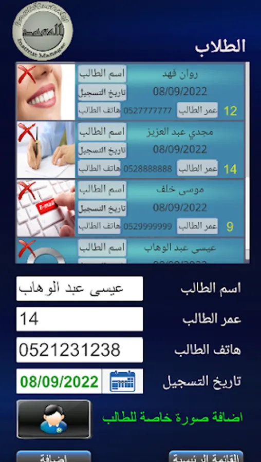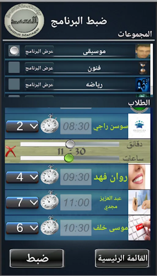 يقوم البرنامج بتنظيم جميع امور المعهد