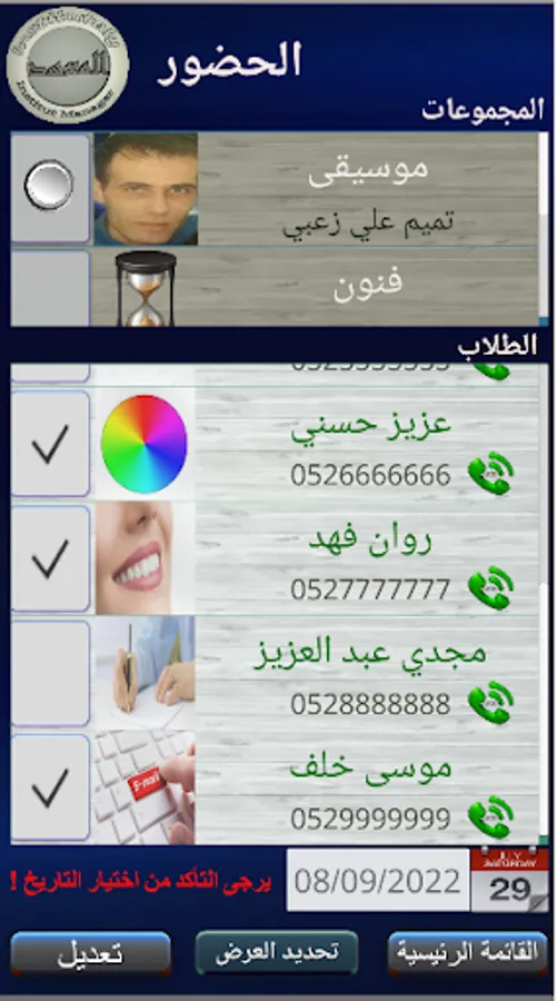 13-عرض الحضور والغياب للطلاب حسب التاريخ