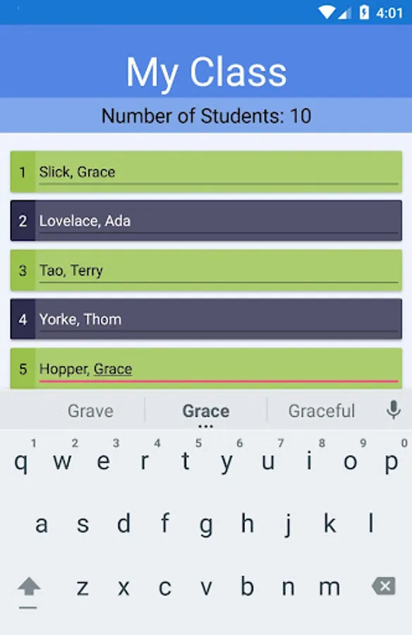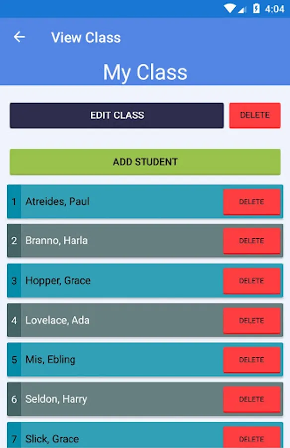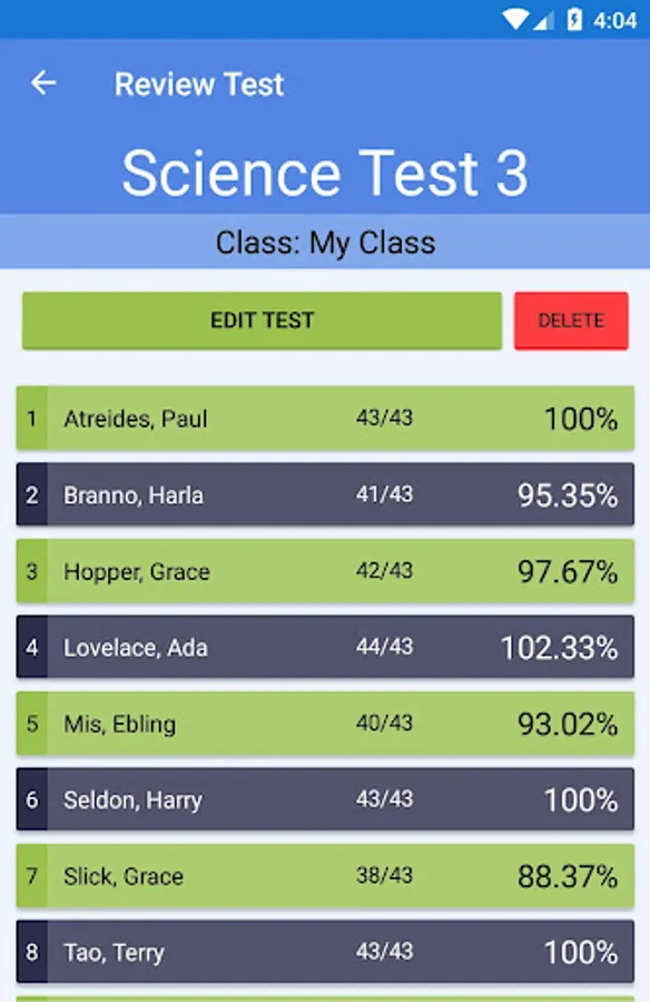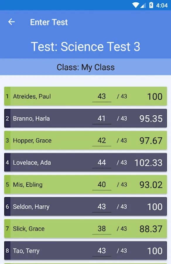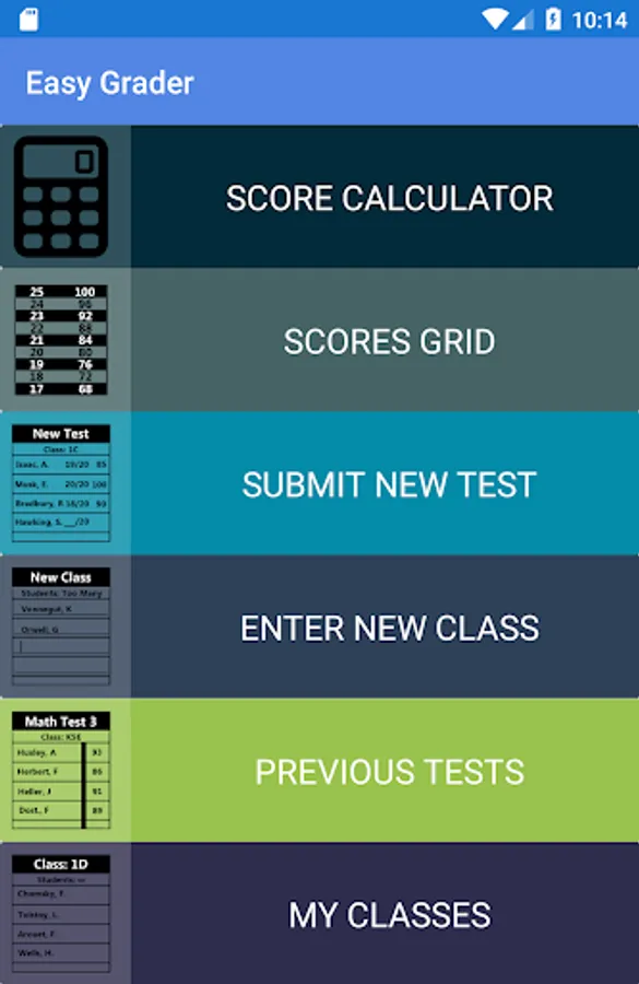 For teachers like myself who do not have access to a computer, this app is also a great way to track your classes and your previous tests. Just like the calculator, simply choose your class and enter how many points they earned, and let the app grade and save your test for you. No need to worry about losing or keeping track of your papers before you get a chance to write 'em in your grade book!