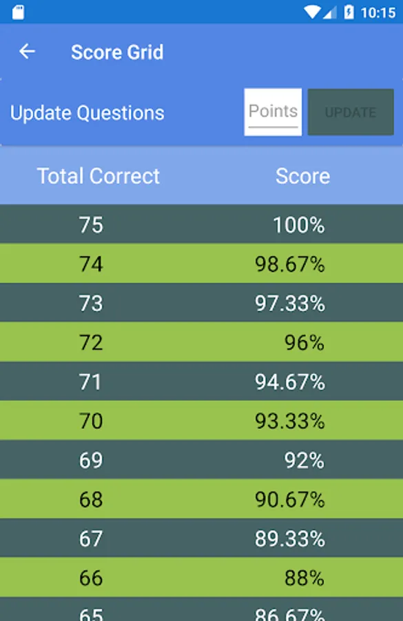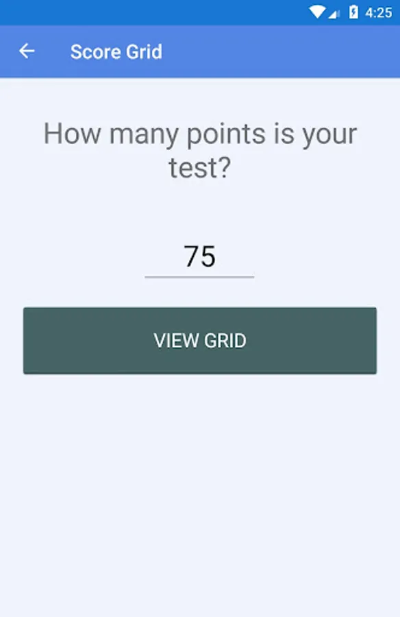 Save your self a ton of time and your thumbs thousands of presses on the calculator with this easy to use, and easy to read grade calculator. Simply tell the app how many points your test is worth, and let it show you all the possible scores.
