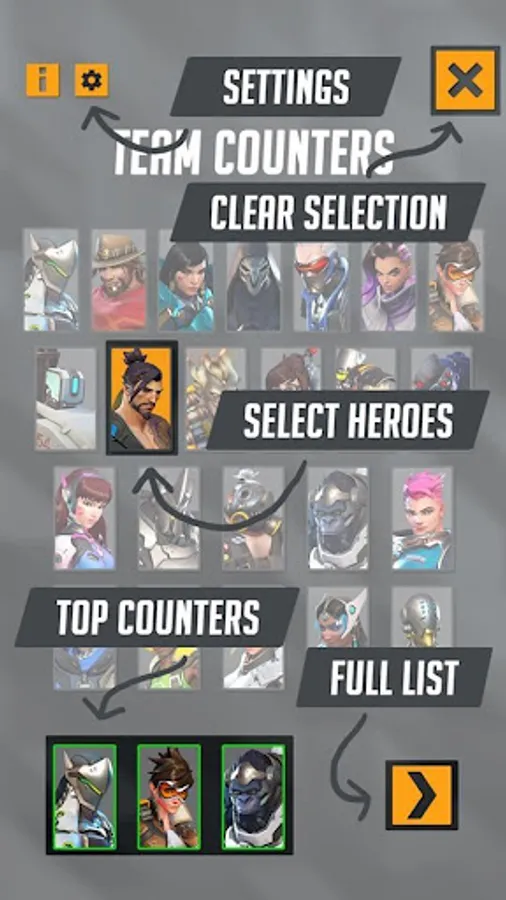 Team Counters allows you to quickly input between one and six Overwatch heroes to see at a glance which characters are statistically the best to counter them.