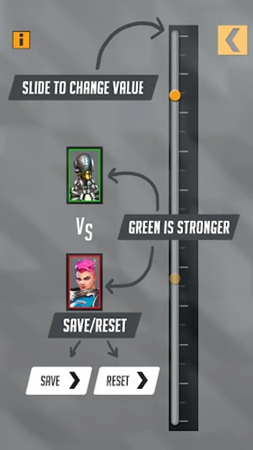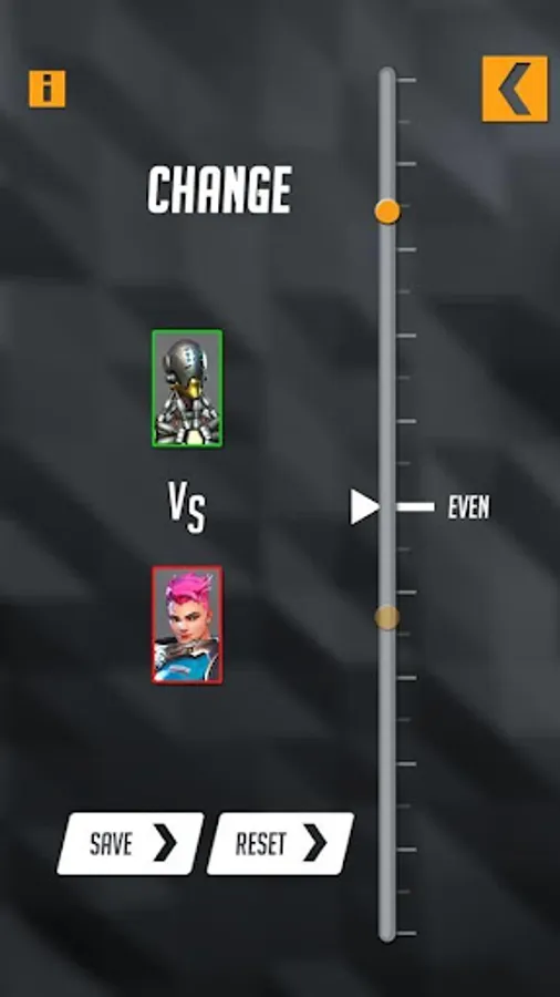 - A settings page where you can customize individual matchups, reset those matchups to the default data, or reset all the changes you've made.