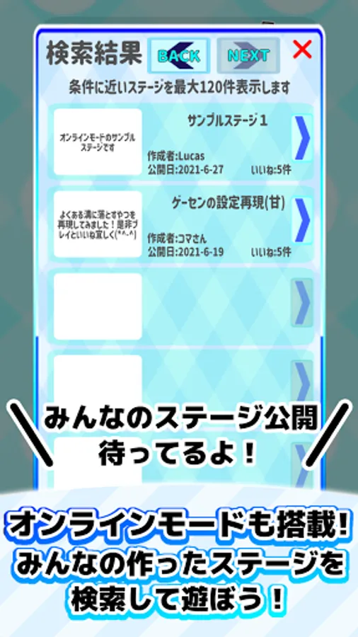 You can search and play the stage published by other users, the way to play is infinite? !!