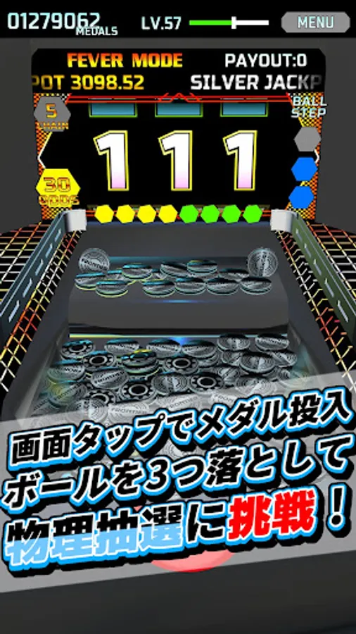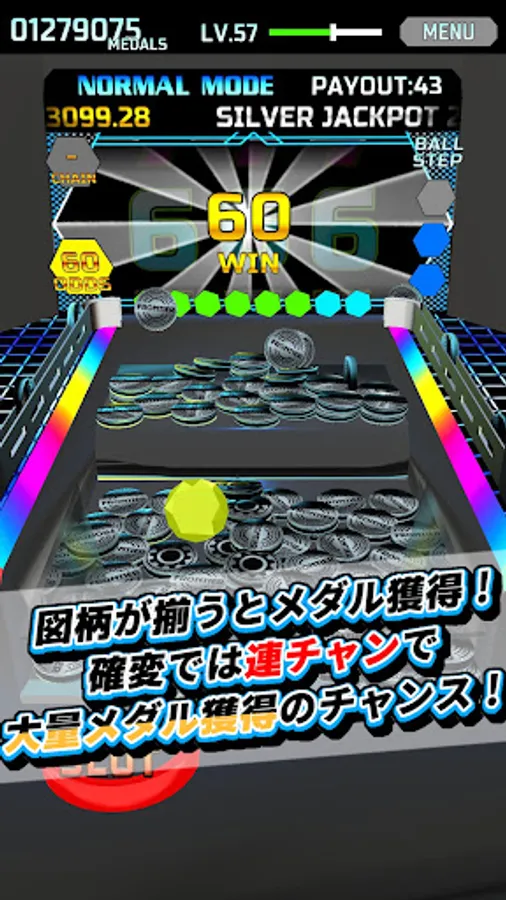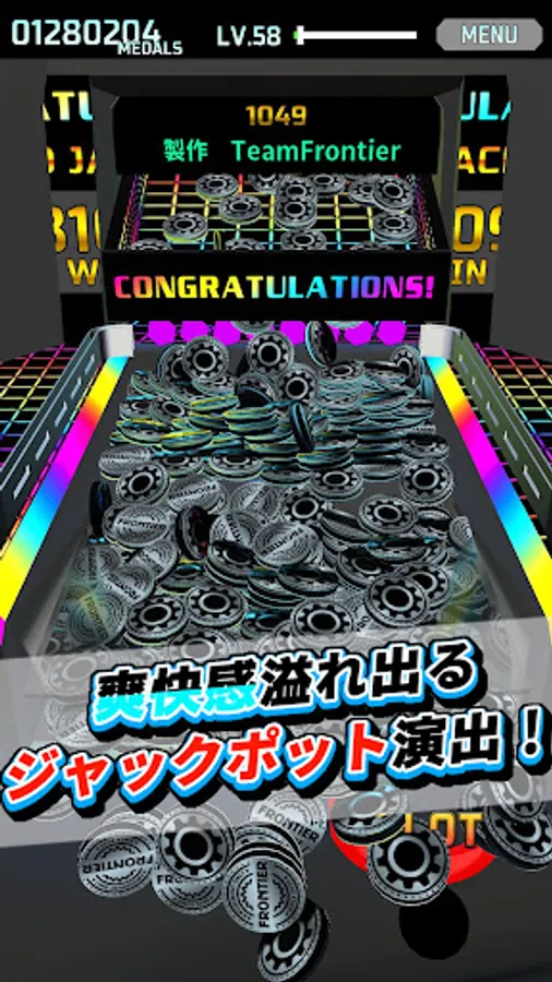 A new sensation medal game app that uses 3D patterns! Experience realistic slots and a powerful jackpot production full of exhilaration on your smartphone!