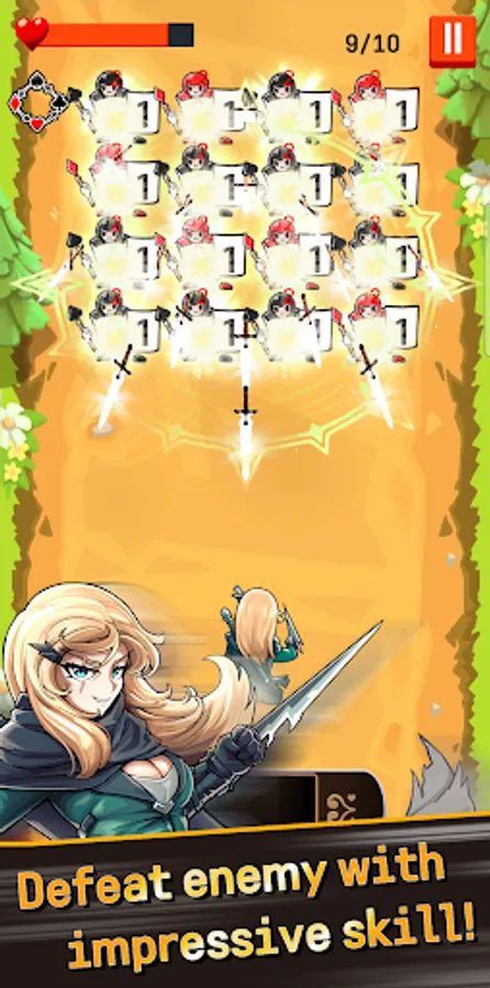 Same Horizontal weapons are merged, the attack damage increases! Beat down symbol merged card soldiers!
