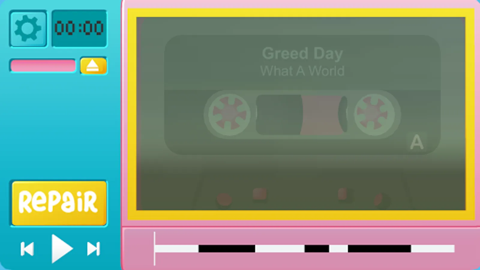 Cosette’s Cassettes is a music mobile game with a 90s aesthetic where the player repairs cassettes and listens to audio diaries.