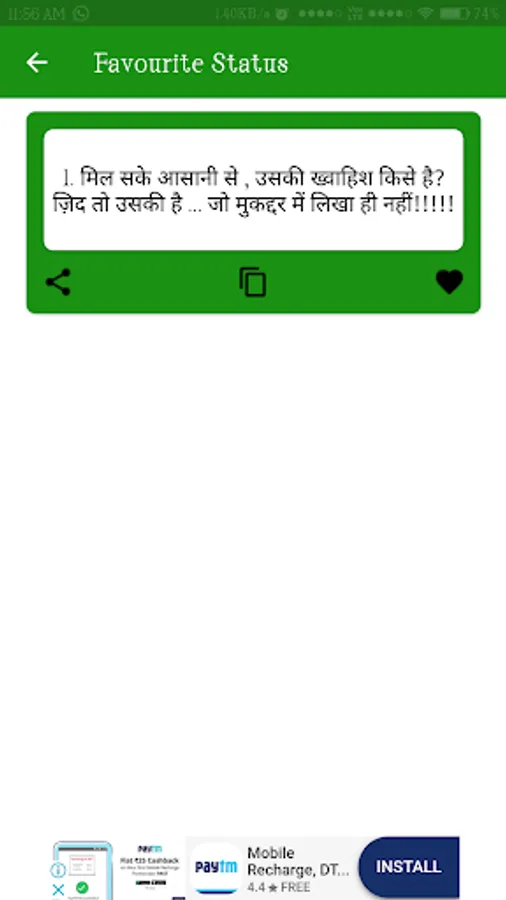 आवेदन में सर्वोत्तम और नवीनतम शायरी, स्थिति और संदेश शामिल हैं।