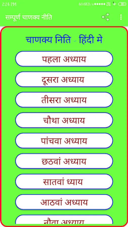 चाणक्य्य हिंदी हिंदी उद्धरण एंड्रॉइड ऐप की कुछ विशेषताएं।