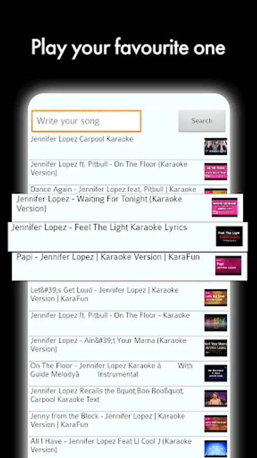 Enjoy almost all awesome karaoke songs on your android phone and thousands of karaoke songs and videos you can enjoy.