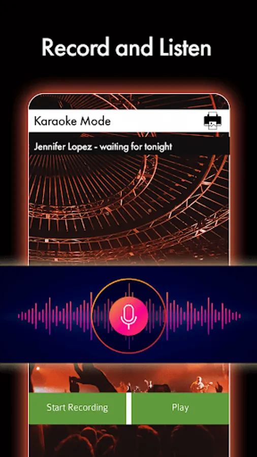 With this Karaoke sing and record application you can sing thousands of backing tracks with synchronized lyrics, from the classics karaokes to the latest hits of the charts, from Country to Heavy Metal, from Rock to Musicals, from Salsa to Dance and even much more.