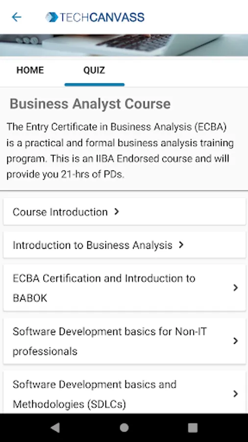 Learn on the Go. Techcanvass is a light weight app and is only available to our Students. This mobile app allows you to view the course lectures and the chapter wise quiz. Other features of the TechEdge portal are only available on the Laptop/Desktop environment.