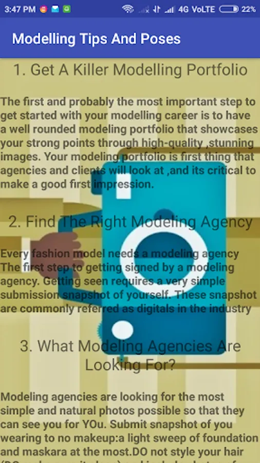 Modeling Tips And Poses :Very helpful app for boys and girls who are starting their career in the field of modeling . it will guide the upcoming models with some tips and a lot of photography poses
