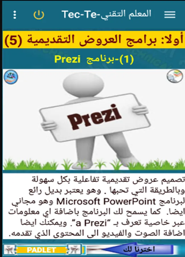 The application contains free educational courses for programs and applications aimed at developing the technical capabilities of male and female teachers.