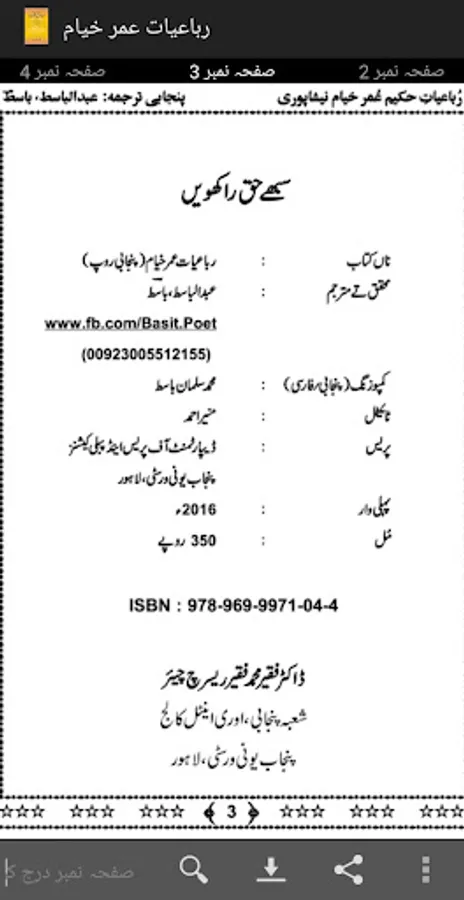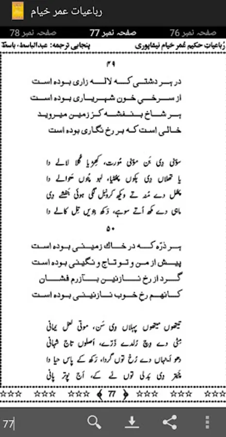 Whole life of Rubayat-e-Umar Khayyam Punjabi Translation.