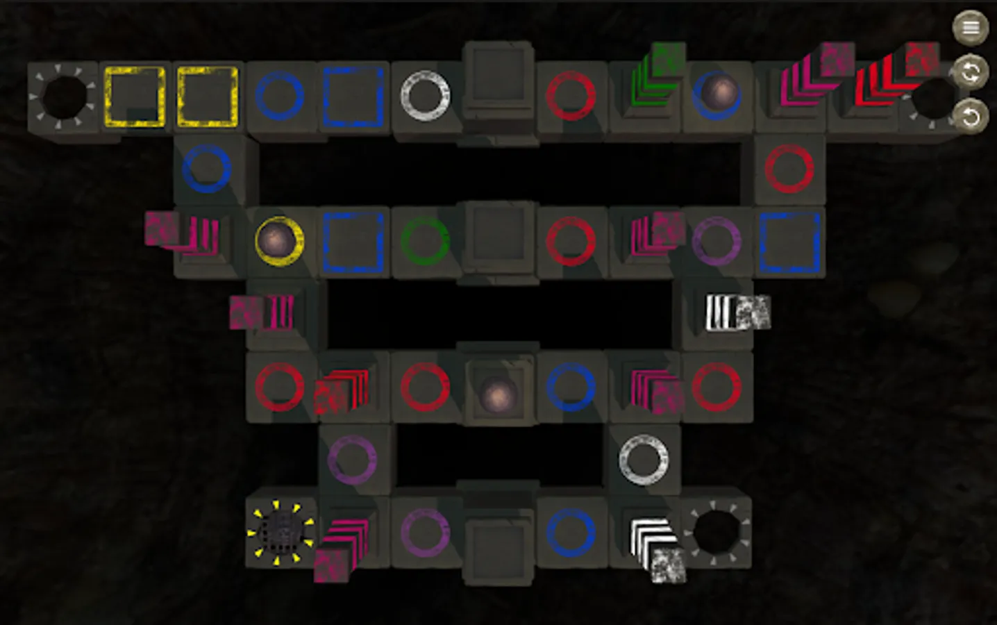 Lead the balls through the dungeons, going deeper and deeper. When one of them is on the platform, walls with the same color as platform are opened and the ball can pass by. Put all of them in the holes to complete level! How far can you get?