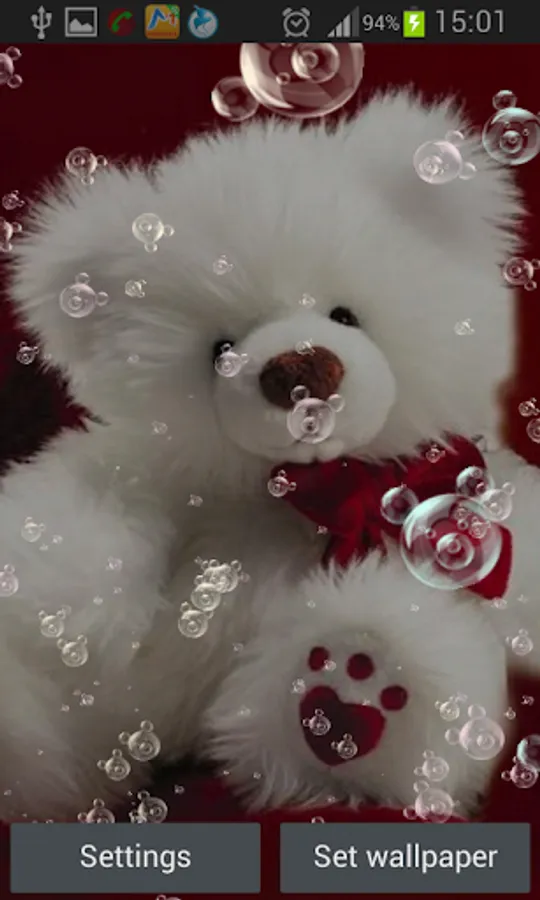 Download teddy bear pics and get teddy bears in every imaginable size, shape, color, fabric, stuffing material and design. You can have giant teddy bear decorating your screen. This free app is a perfect gift for your kids. Cute teddy bears will make them extremely happy. Set pink teddy bear for your little girls or blue teddy bear for your little boys. They will be amazed when they see your Android™ phone screen covered with huge teddy bear. Choose your favorite “teddy bear wallpaper” and set it as mobile wallpaper or screen saver. Try awesome 3D wallpaper now and have fun! Download ♥Teddy Bear Live Wallpaper♥ and enjoy this high resolution pictures on your screen. Best wallpapers and free screen savers are a click away from you. Get these HD wallpapers completely free of charge and provide perfect “live wallpaper” for your new Samsung Galaxy mobile.