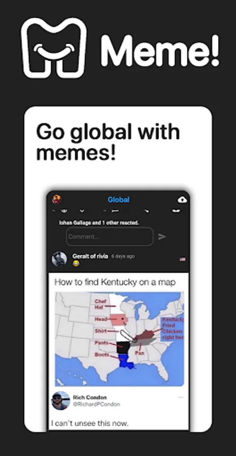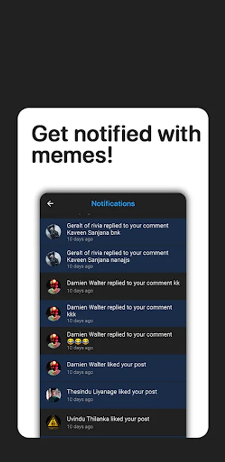 A social media platform that gathers Memers all around the world .You can login with your google account or as a guest .This includes memes and entertaining posts only .But we don't allow any bad contents, racism or anything relevant to this type of posts. So, please use this app just for positive meme contents. Our main purpose is to gather the Memers all around the world and spread entertain and happiness to the people. So.., Use this app just to entertain an another person and just to make them happy and laugh with your memes. Thank you and don't forget to rate this app.