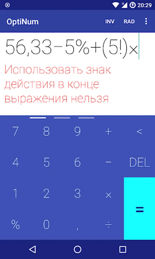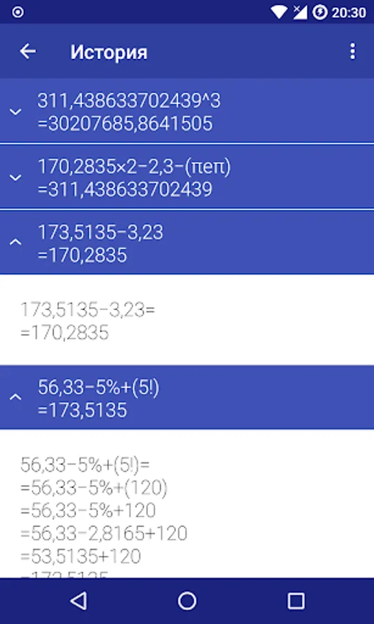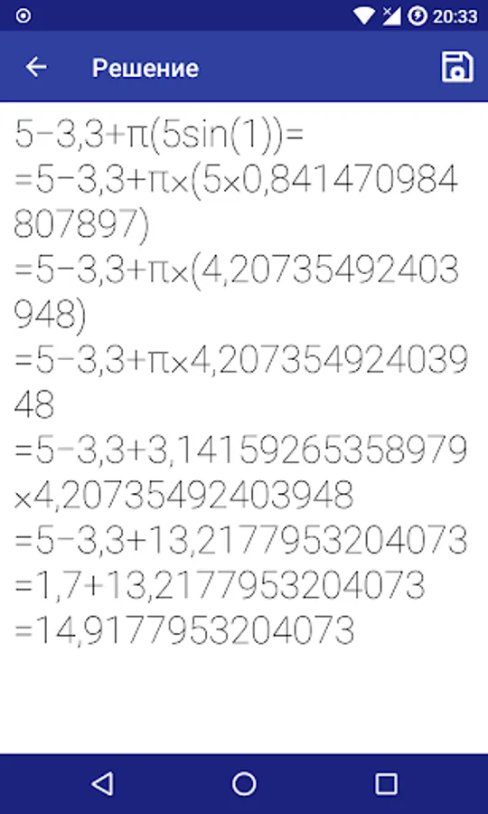 The app combines the functions of both regular and scientific calculator. It complements it step by step evaluation of expressions and detailed mapping of the calculation of the error.