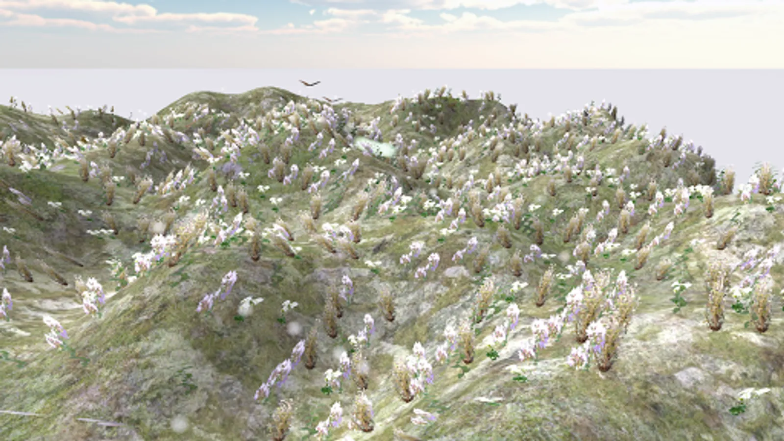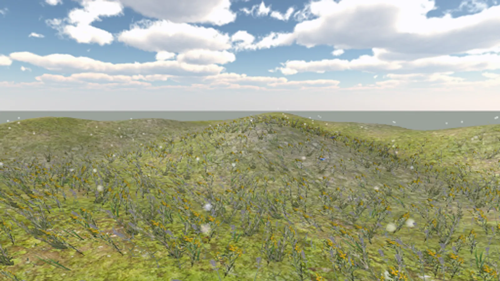 Drive the wind over the land or just watch it evolve by itself across the scenery.