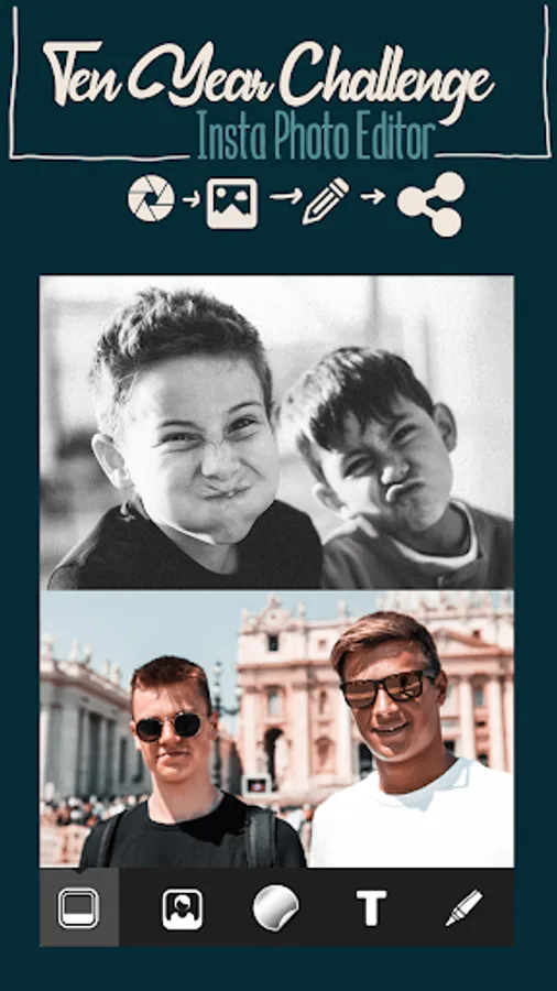 10YearsChallenge never goes out of style! It's always fun to see if you grew old or grew up! So, it's time to compare pictures side by side and see how age hit you! Ten Year Challenge Insta Photo Editor is the app available for free download that you can use to make an awesome before and after picture collage. Install ten years challenge app and see an old and latest photo together!