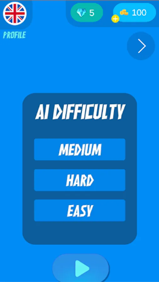 - Three modes available in Single Player Easy , medium and hard.