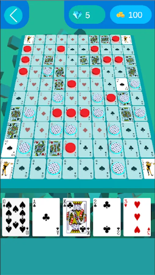 A Sequence board contains 100 cards. Maximum 3 players and minimum 2 players can play either online or offline. Also, single player can play against BOT in single player mode.