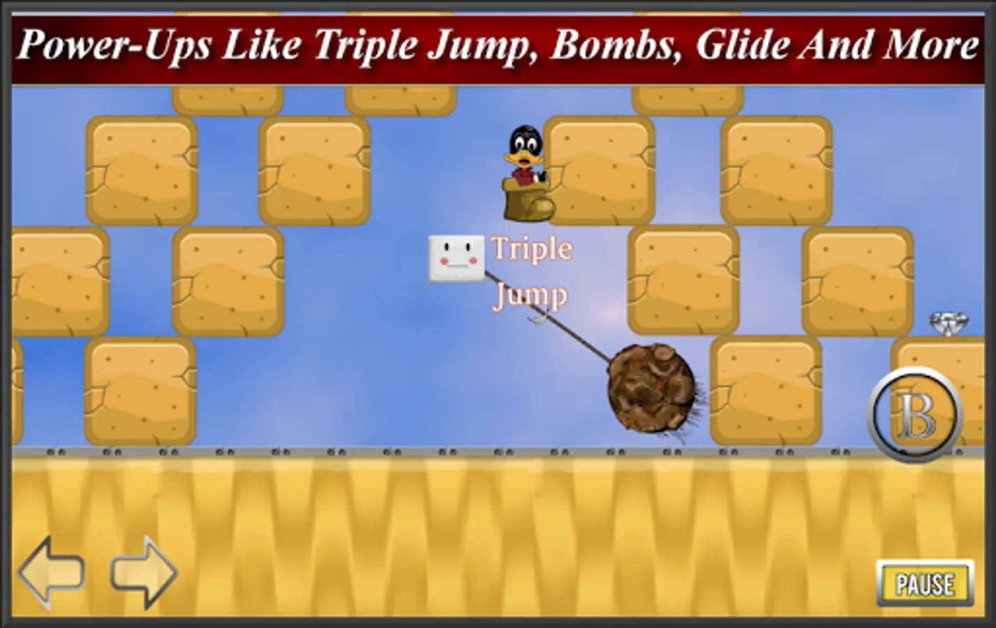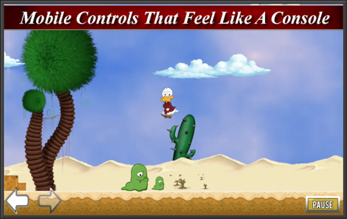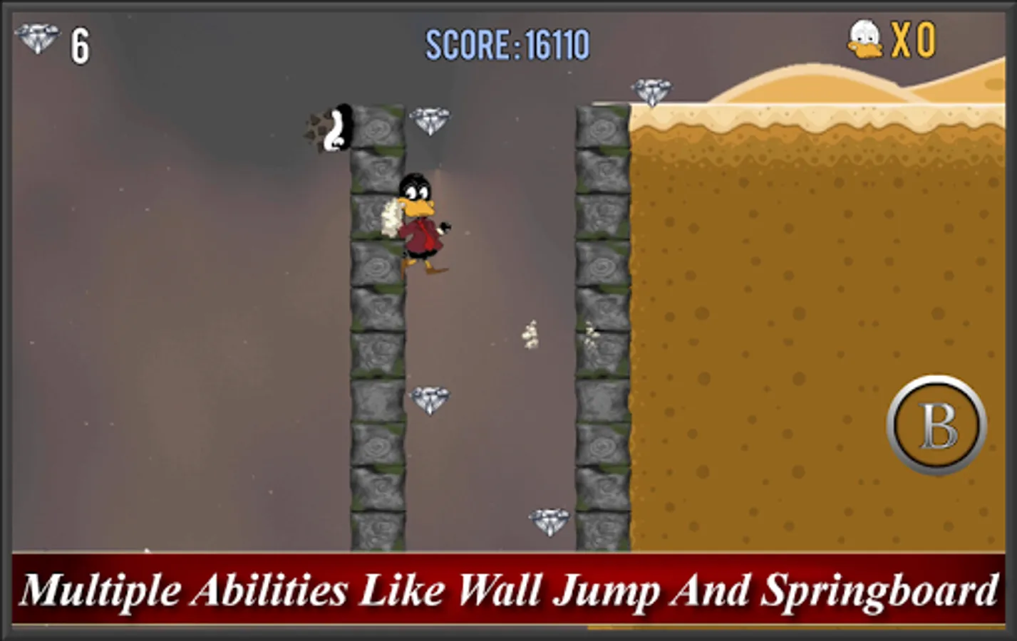 This is the second world in the Duck Destiny saga. Play as Quacker Monty Duckerson a duck on a mission. After seeing the golden egg he will stop at nothing to retrieve it. Traverse the forbidden desert and claim the golden egg. This installment contain all the goodness of the first world and adds new enemies, power-ups, and obstacles on every level such as glide power, quicksand, devil fuzz ball and much more.