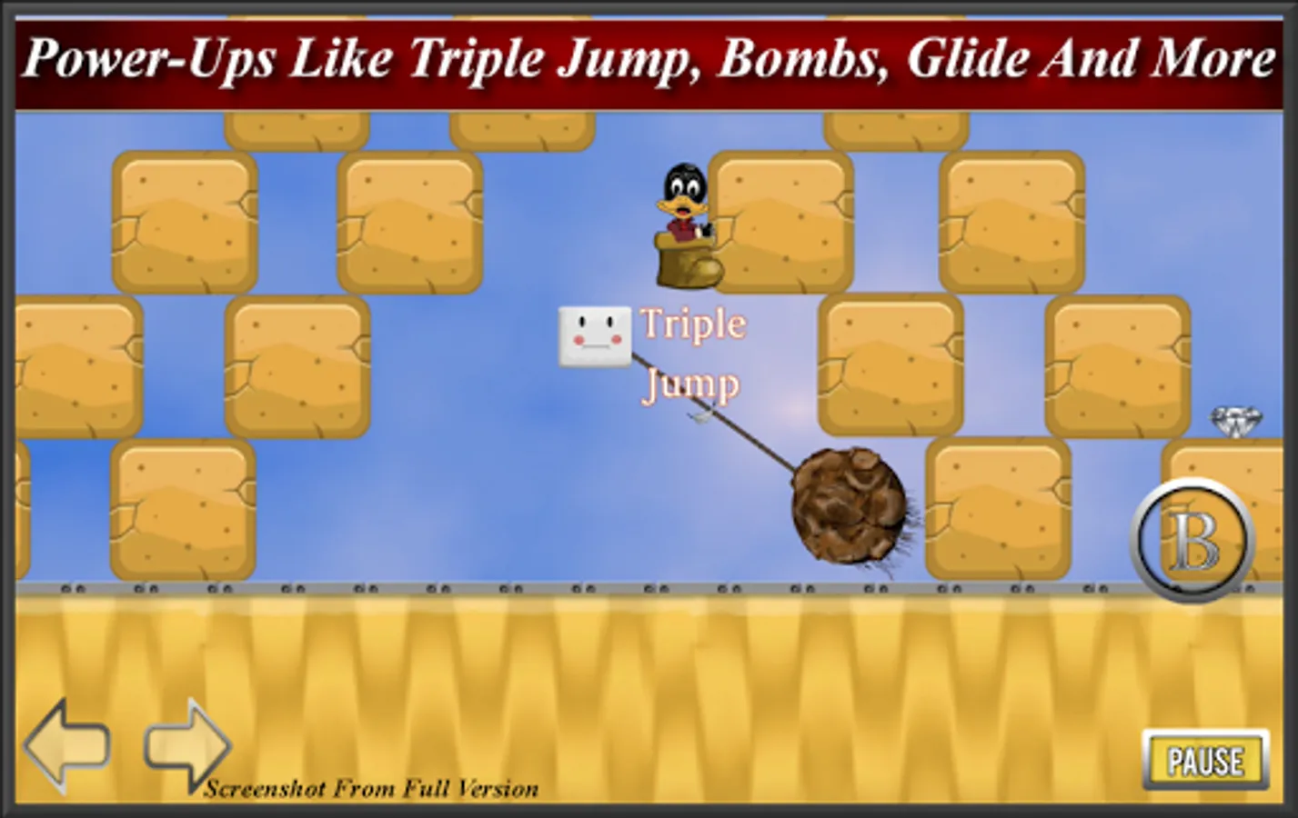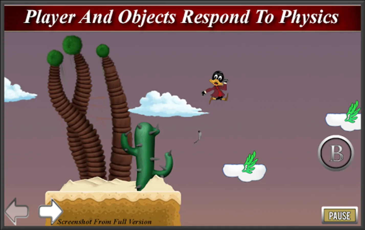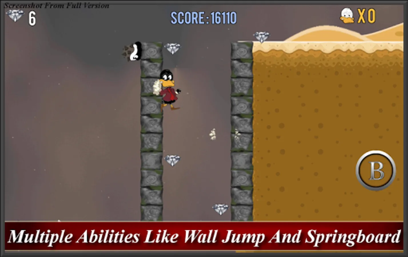 Demo - This is the second world in the Duck Destiny saga. Play as Quacker Monty Duckerson a duck on a mission. After seeing the golden egg he will stop at nothing to retrieve it. Traverse the forbidden desert and claim the golden egg. This installment contain all the goodness of the first world and adds new enemies, power-ups, and obstacles on every level such as glide power, quicksand, devil fuzz ball and much more.