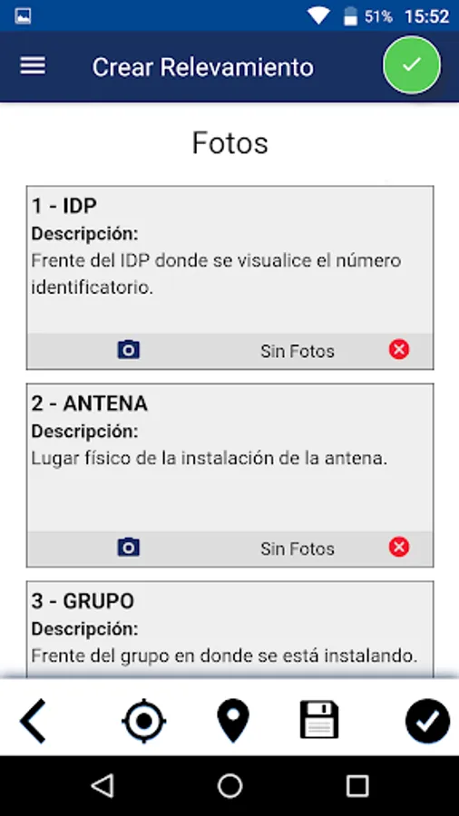 This application requires an account, accessing it, the app provides a list of tasks assigned to the user installation. For each task, we can fill a record installation through a form. we will be given the opportunity to also take pictures to document the completion of the task. The application will synchronize the records with a server to store and be viewed by planners / operators.