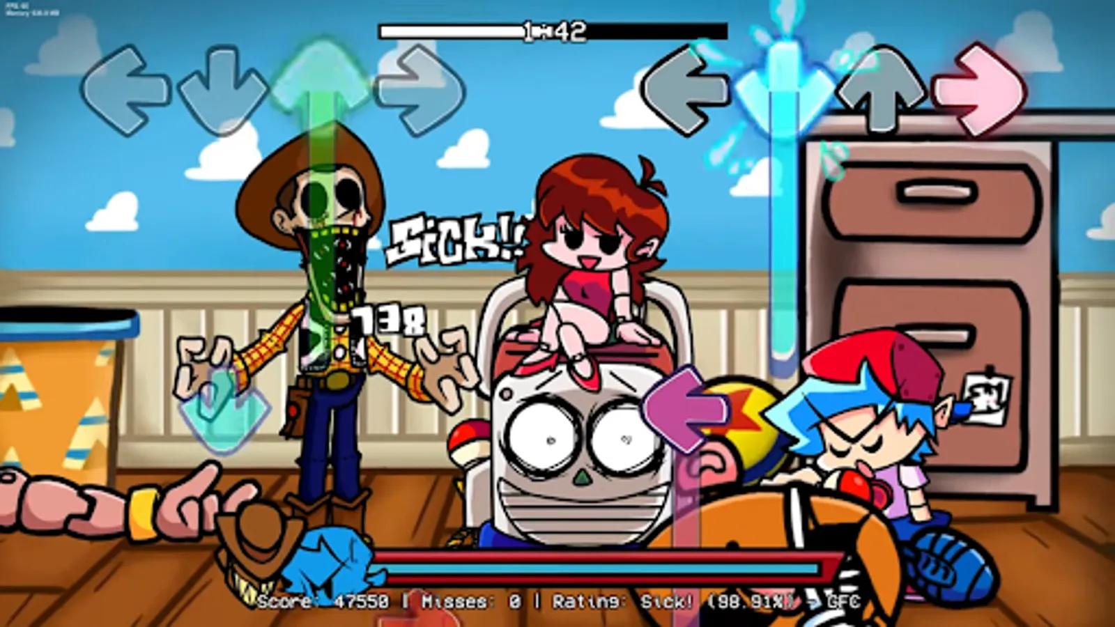 đšī¸ Dive into a twisted tale as Boyfriend and Girlfriend step into Andy's room, where they encounter Woody, the iconic cowboy doll. But beware, something eerie lurks beneath Woody's cheerful exterior in this "Toy Story Woody (FNF Mod) (Creepypasta)" adventure. Are you ready to face the creepy melodies of Toys Madness Friday?