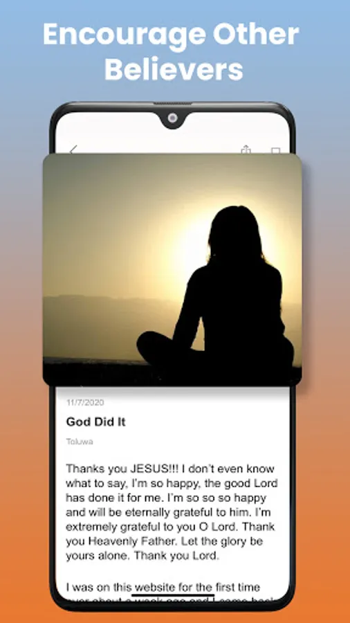It’s so easy to help someone in need and many users say they’re blessed. No one can ever take away what God has done for you. Share your experience and join Christian believers from all nations and all walks of life!