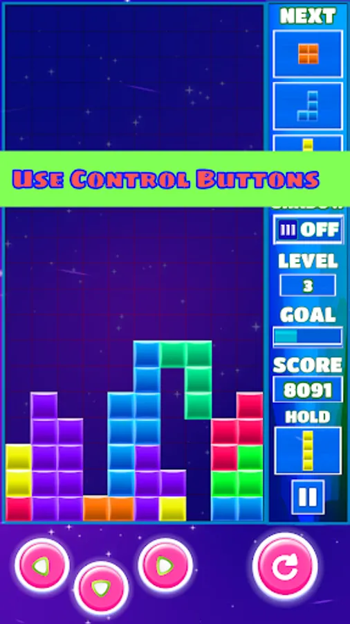 Use both Touch and On-screen Controls to move and rotate the tetra blocks.