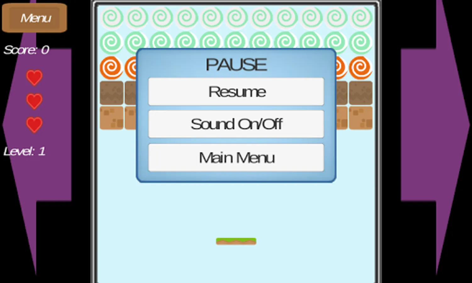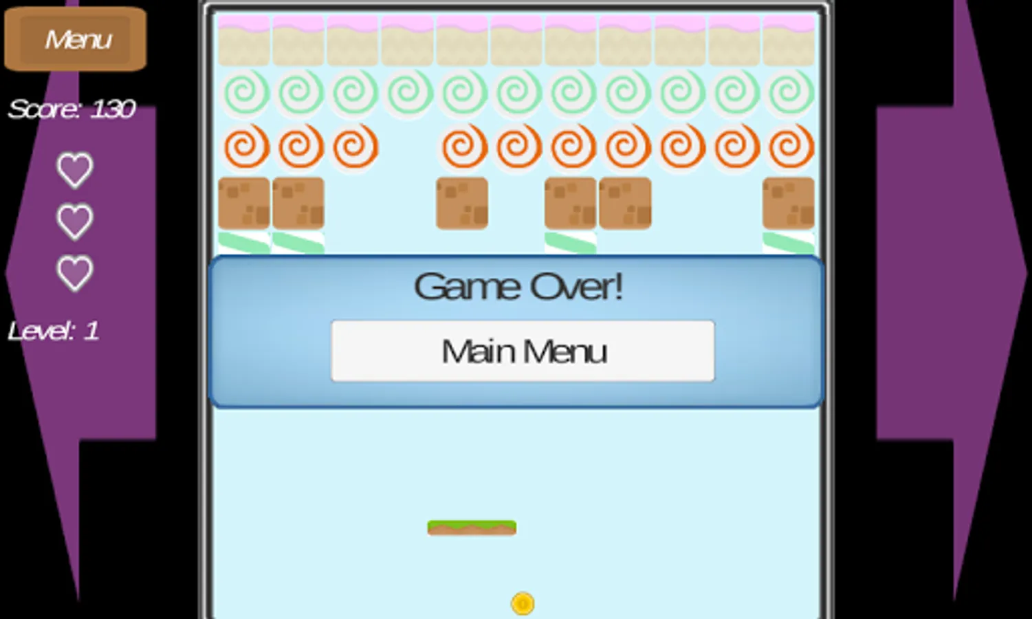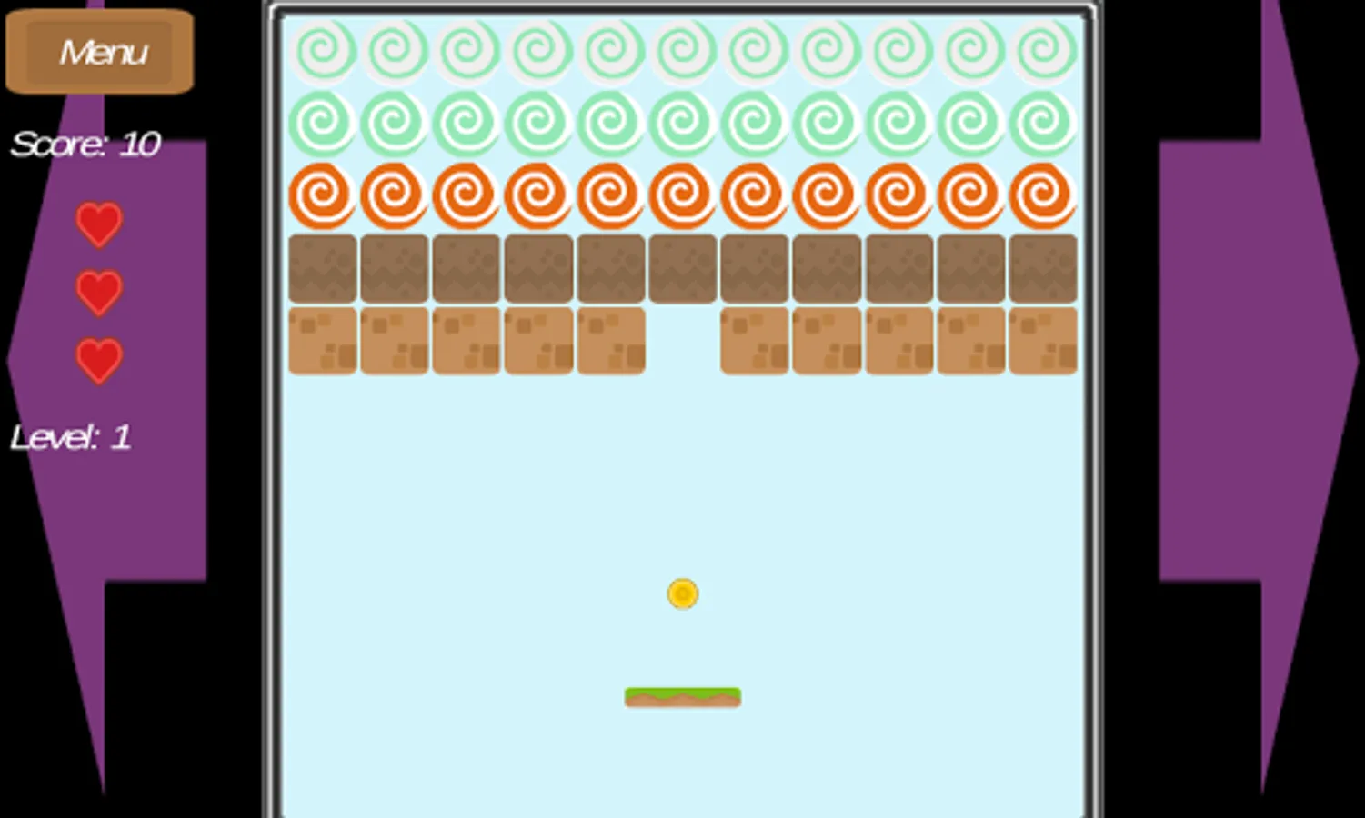 Complete all levels, once you have broken all sugar bricks on the current level you will proceed to the next one. 8-bit style game. There are 10 levels.