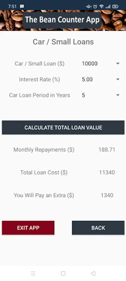 2. A calculator telling you how much you will need to repay on a small loan and how much that small loan will actually cost you.