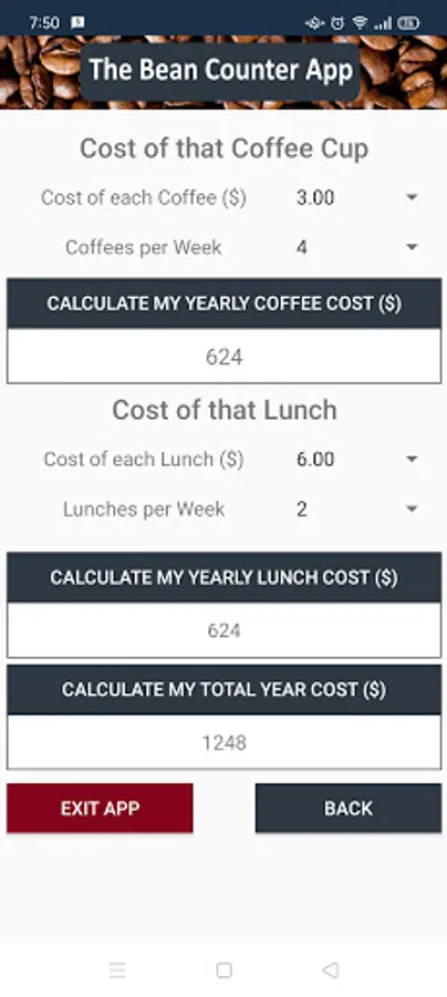 1. A calculator telling you how much that daily coffee and lunch habit is costing you