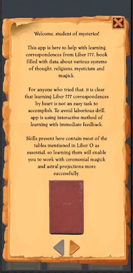 For anyone who tried that, it is clear that learning Liber 777 correspondences by heart is not an easy task to accomplish. To avoid laborious drill, app is using interactive method of learning with immediate feedback.