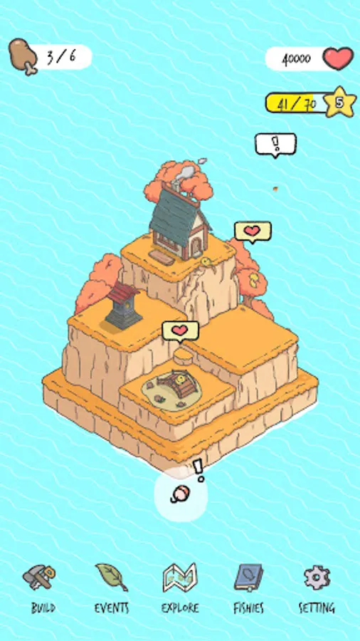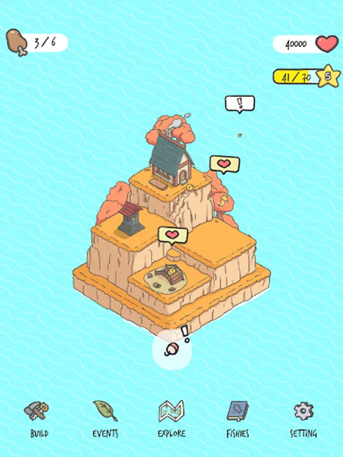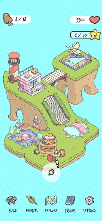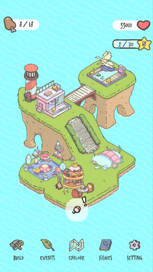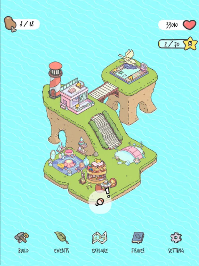Collect diaries as your fluffy interact with the structures, you can also fish for cute little sea creatures on the different isle.